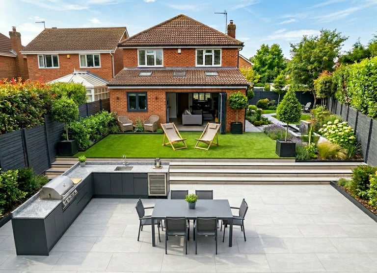 Multi-level patio spaces — transforming sloped or challenging gardens dramatically